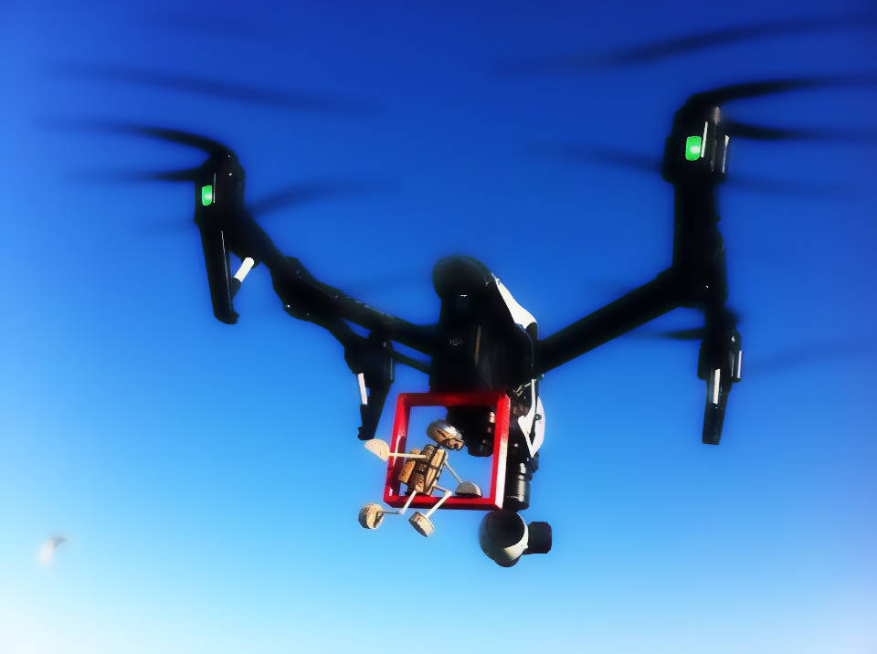 Wir sind eigentlich nur Zuschauer an der größten Staffelei der Welt, aber diesmal durften wir ein Teil davon sein. Und so hat uns einer der "Erschaffer" der kleinen Männchen die Nr. 500 mit Fallschirm und Fliegerbrille zugesendet. Wir haben einen 3D Rahmen gedruckt und unter die Kamera-Drohne DJI Inspire 1 gehängt. Und los ging es auf der Suche nach dem richtigen Straßenschild.